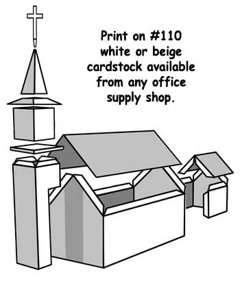 ![]() (left) Notes to Pierre, the designer, from Chip about halfway through the design. Designers for Fiddlersgreen are all open for input like this. Its nice to build a little church and Sunday School Hall but the best fun of all is to build a little (New England) Village around it. Here you see it (in N scale), happy amongst the West Quoddy Lighthouse in Maine, Mark Twain's Study, the Straitsmouth Light keeper's House, also in Maine, and the Merchant's House