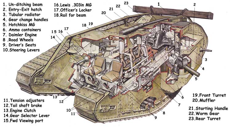 ![]() Mark IV WW1 Tank frontal view |