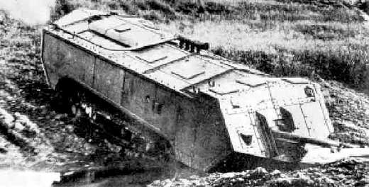 The St Chamond was first used in action on May 5 1917, in support of an infantry attack at Mole de Afflux. The major flaw in the construction - the small drive train and the big front overhang - at once revealed itself.. of the 16 St Chamond tanks that participated in the assault, and unbelievable 15 got firmly stuck when they attempted to cross the German trenches. In the next big tank attack, both Schneider CA 1s and St Chamond's participated, but the result was again a flop !! Only the CA 1s managed to pass the German trenches! |