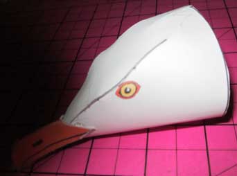 ![]() The gull's head is curved and glued along the bottom. Glue the head to the tabs on the front end of the fuselage. |