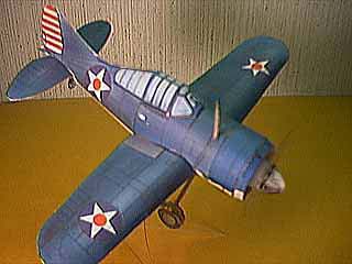 After going on Google and finding a free F2A buffalo, my favorite WWII plane, I built it from the sheet on the International Buffalo site. I used a P-40 cockpit interior and seat from another site. I made a radio aerial from a tooth pick and a sight and exhaust from your thumbnail Ju-88 bombs. I had the cockpit open and it was the best model I have ever made. Unfortunately, it was lost when my house flooded, but I will rebuild it. Mark (5/06)