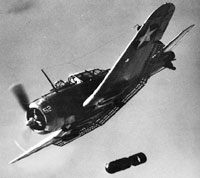THE BARGE, THE CLUNK: epithets bestowed on the Douglas Dauntless by its crews were legion and for the most part derogatory yet possessing an element of affection withal. Mundane by contemporary performance standards, the Dauntless was underpowered, painfully slow, short on range, woefully vulnerable to fighters, and uncomfortable and fatiguing to fly for any length of time, being inherently noisy and draught. But it did possess certain invaluable assets that mitigated these shortcomings. Its handling characteristics were, for the most part, innocuous and it was responsive; it was dependable and extremely sturdy, capable of absorbing considerable battle damage and remaining airborne, and, most important, it was an accurate dive bomber.