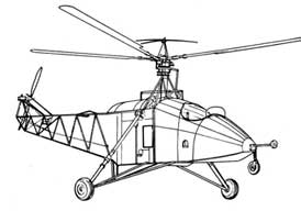 From the over-riding clutch a short drive shaft extended aft to the main transmission. The tail rotor drive shaft was supported by five bearings mounted in self-aligning mounts, and the rotor itself was mounted on the auxiliary transmission shaft.Each of the three main blades was fully articulated (ie, was free to flap around a horizontal hinge and to lead or lag about a vertical hinge) and were of conventional design, a steel tube bar being the main structural member and the blade envelope being built up with plywood ribs and formers covered with fabric. The torque reaction of the main rotor was counteracted by the three-bladed auxiliary or tail rotor mounted on the starboard side.