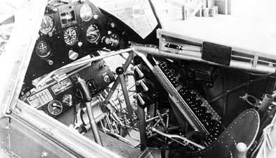 | A: Pratt & Whitney's R-1535 Twin Wasp junior engine powered the SB2U and V-156. This drove a two- bladed metal propeller. | B: The Vindicator had one forward-firing and one free-mounted gun in the rear cockpit, each were .050 cal. machine guns. | C: A 'trapeze' below the cockpit was fitted to a bomb on the centerline pylon, this pulled the bomb downwards and clear of the aircraft. | D: The undercarriage on the Vindicator retracted to the rear and rotated through 9 deg, with the wheels fitting into a recessed bay in each wing. |