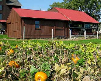 ![]() Massive amounts of hay can be stored in the loft of the New England Barn |
